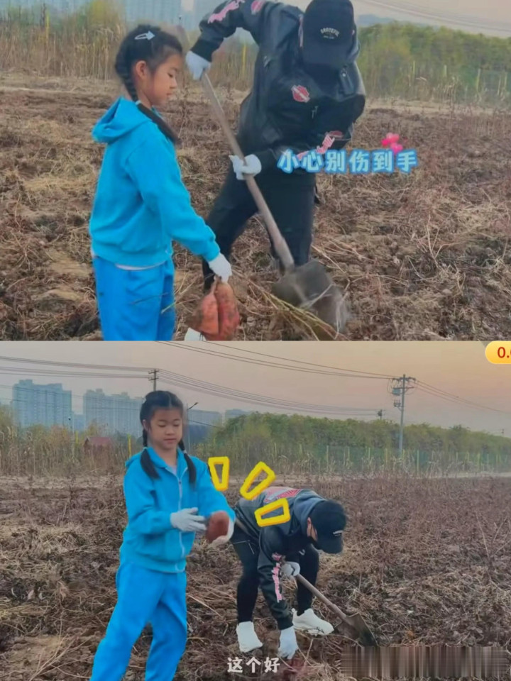 例如上次他陪着醒醒下地挖山芋,醒醒全程特别开心,而且动手能力很强。