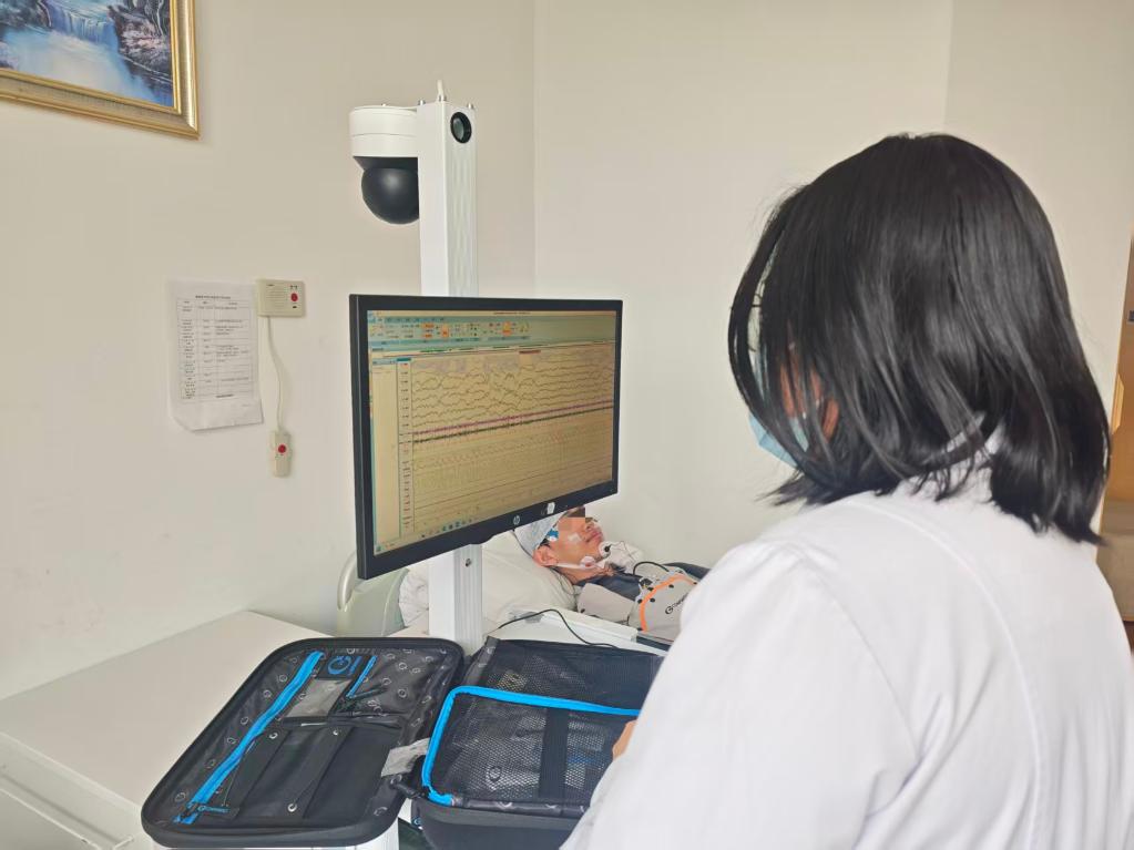 北京大学第六医院睡眠医学科医生正在进行多导睡眠监测。新华社记者徐鹏航 摄