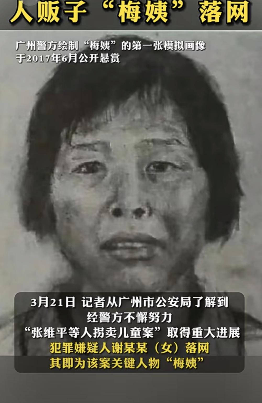 终于抓到了她!3月21日,广州市公安局通报,经警方不懈努力,“梅姨”谢某某落网。经审讯,谢某某对其贩卖儿童的事实供认不讳,案件正在进一步办理中。消息一出,无数网友拍手称快。