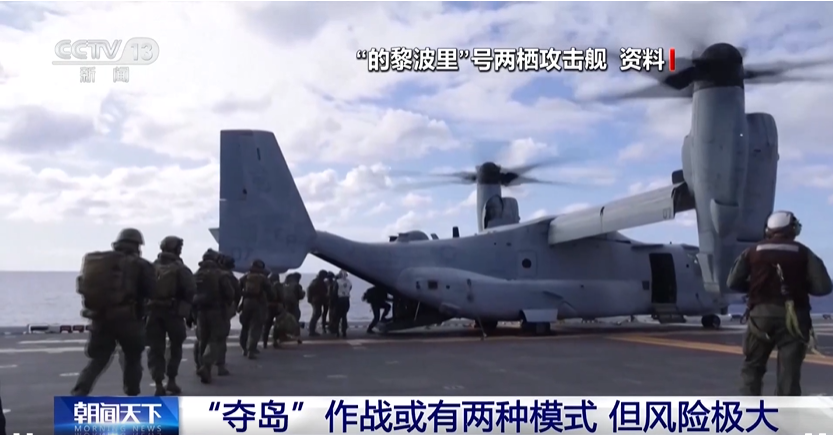 总台军事观察员 魏东旭 :两栖作战部队抵达中东地区后,美军具备针对哈尔克岛和霍尔木兹海峡区域内其他伊朗岛屿实施进攻的能力。夺岛作战可能有两种模式: